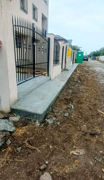 Casa este construita pe un teren de 250 mp, iar curtea libera in suprafata de 190 mp este amenajata cu gazon.