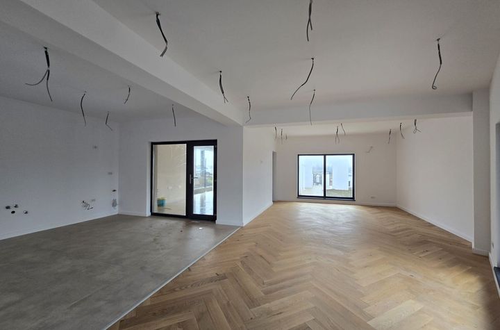 Mobilat: nemobilat, Stare interior: nou, Bucatarie: deschisa separata, Nemobilata, Compartimentare: decomandat, Usi interior: mdf, Camere speciale: camera utilitati, Vizionari: imobil liber, Curte: individuala, Vechime imobil: nou, Stadiu constructie: in constructie, Stare imobil: exceptionala, Structura: beton, Caramida, Cadre, Pereti exteriori: beton, Caramida, Izolatie exterioara: tencuiala, Polistiren expandat, Pereti interiori: beton, Caramida, Izolatie interioara: fara izolatie, Acoperis: beton - terasa circulabila, Fatada: tencuiala decorativa, Plansee: beton armat, Tip vila: individuala, Fundatie: cu ziduri (beton turnat), Acces: acces stradal, Strazi limitrofe: amenajate, Pietruite, Asfaltate, Orientari: est
