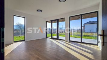 La parter regasim un living generos cu acces direct spre terasa, bucatarie, grup sanitar, camera tehnica si un hol de intrare bine proportionat. Etajul este dedicat zonei de noapte si include trei dormitoare, doua bai moderne, un hol spatios si doua balcoane deschise. Inaltimea interioara de 2,7 metri contribuie la o senzatie de volum si confort superior, accentuata de ferestrele ample care aduc lumina naturala in toate incaperile.