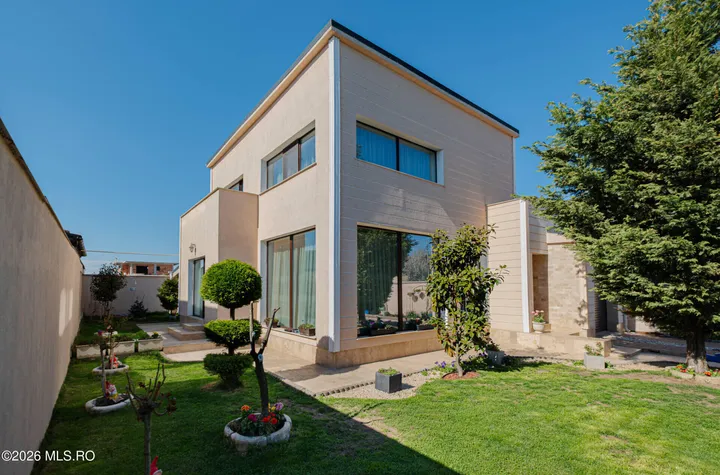 Finisaje: parchet laminat, Geamuri termoizolante - pvc, Calorifere aluminiu, Dotari: aer conditionat, Masina de spalat rufe, Masina de uscat rufe, Iluminat exterior, Cablu, Gard inalt, Sistem stropitoare
