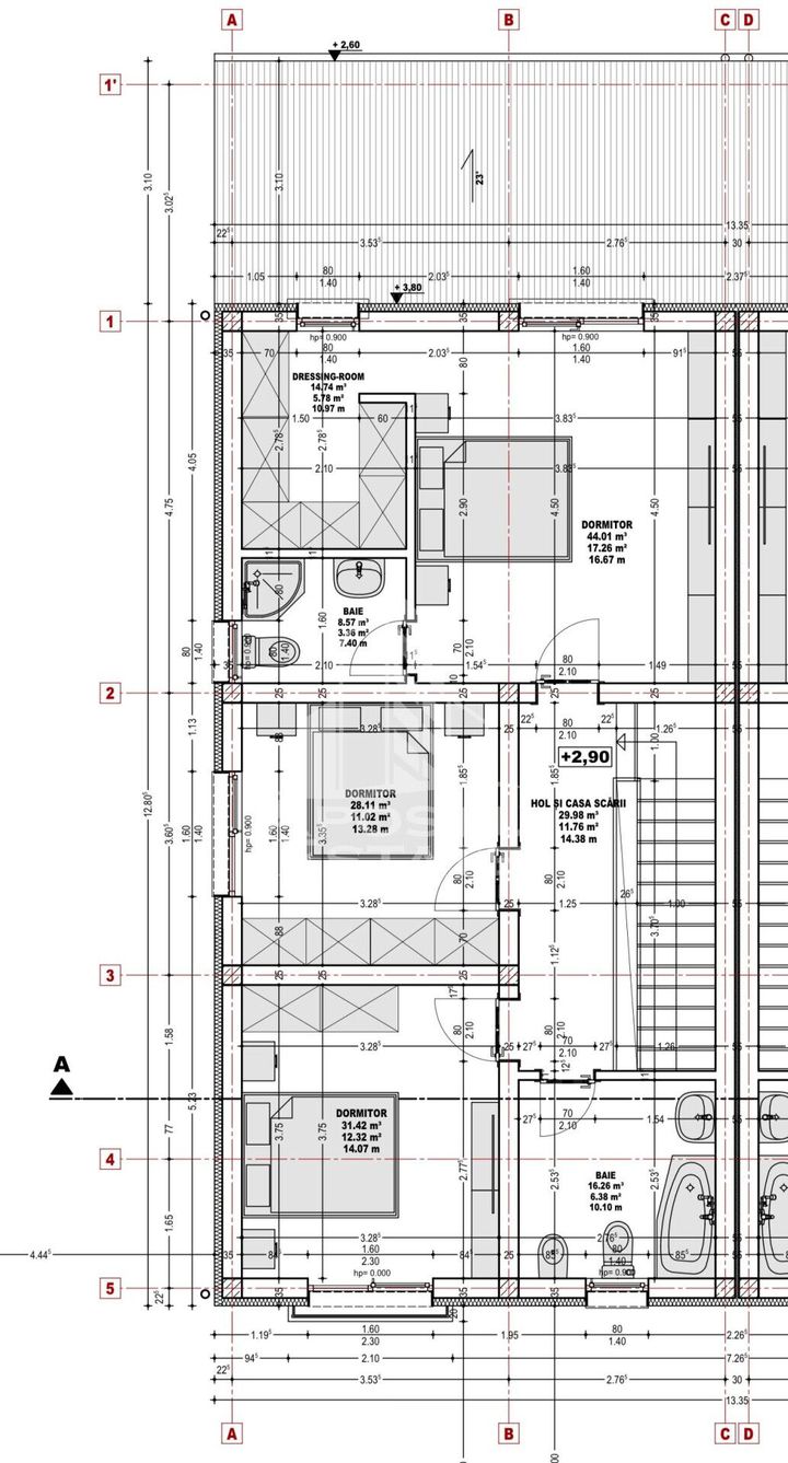 - 3 dormitoare dintre care unul cu baie propie si dressing.