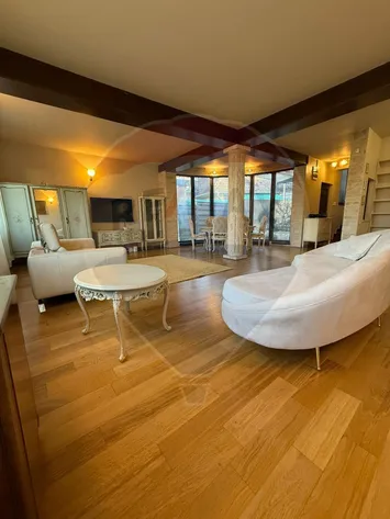 Finisaje: parchet laminat, Vopsea lavabila, Faianta, Calorifere fonta, Dotari: aer conditionat, Scara interioara, Sistem de alarma, Interfon, Masina de spalat rufe, Iluminat exterior, Televizor; acoperiș