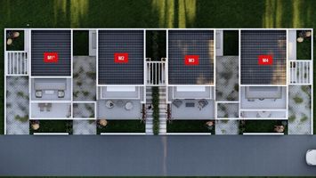 Locuință nouă pe 3 niveluri, suprafață 90,46 mp, cu 3 dormitoare și 3 băi, parte dintr-un ansamblu rezidențial.
