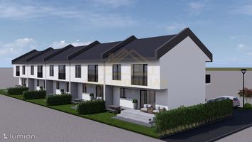 Mobilat: nemobilat, Stare interior: nou, Compartimentare: decomandat, Bucatarie: nemobilata, Inchisa, Usi interior: mdf, Vizionari: imobil liber, Curte: individuala, Vechime imobil: nou, Stadiu constructie: in constructie, Stare imobil: buna, Pereti exteriori: caramida, Pereti interiori: caramida, Fatada: vopsea decorativa, Acoperis: tigla metalica, Izolatie exterioara: polistiren expandat, Plansee: beton armat, Structura: cadre, Tip vila: insiruite, Fundatie: cu ziduri (beton turnat), Acces: acces stradal, Strazi limitrofe: amenajate, Neamenajate, Orientari: sud - vest, Vedere: vedere mixta