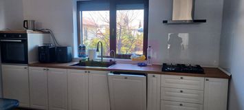 La 12 km de Bucuresti, In partea NV, cu acces prin Chitila, prin Militari sau din A1 si A0, in localitatea Sabareni, intr-o zona rezidentiala noua, ferita de traficul rutier. Casa din caramida, cu structura de rezistenta din beton armat, cu placa si peste parter, cu podul inalt, luminos, mansardabil. Casa este alcatuita din 4 camere, bucatarie, 2 bai, dresing, hol, pod mansardabil, terasa acoperita si pivnita. Finisajele interioare: parchetul, gresie, faianta, obiectele sanitare din bai si usile interioare pot fi alese de cumparator. Tamplarie Salamander cu geamuri tripan, tigla metalica cu grosimea de 0,5. Incalzire in pardoseala in toata casa, centrala termica pe gaze. Curte 447 mp, imprejmuita, cu trotuare, alee pietonala si auto. Termen de finalizare 4 luni. Pret 145.000 EUR. Nu se plateste TVA sau comision.