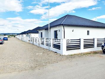 Finisaje: parchet laminat, Gresie, Vopsea lavabila, Faianta, Geamuri termoizolante - pvc, Calorifere fonta; ferestre care se deschid, Dotari: iluminat exterior; cabină de duș, Cadă, Acoperiș, Telecomandă poartă acces auto