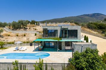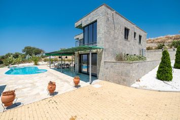 Clădirea prezintă arhitectură modernă și finisaje cu piatră naturală; pereții au fost realizați fără gips-carton și cu dublă izolație termică. În exterior există o piscină de 12 metri cu jacuzzi și cascadă, echipată cu sistem de încălzire/răcire; interiorul dispune de pardoseli încălzite din piatră și sistem de climatizare pe bază de apă.