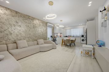 Cu o suprafata de teren de 325 mp si o suprafata construita de 117 mp, utili 96 mp, vila este dispusa astfel: 4 camere: 3 dormitoare luminoase, living generos cu bucatarie open space, 2 bai moderne, terasa,pod pentru depozitare si parcare pentru 2 masini cu 380V pentru incaracare masina electrica. Se preda mobilata si utilata avand un design modern, mobilier in stare foarte buna, bucatarie complet echipata cu electrocasnice, spatii bine compartimentate, fara pierderi de suprafata.