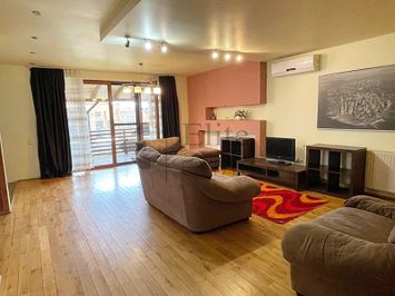 Imobilul se inchiriaza complet mobilat si utilat cu electrocasnice de calitate. , Ca si electrocasnice beneficiaza de: plita si cuptor electric, hota, cuptor cu microunde incorporat, combina frigorifica, masina de spalat vase, Tv, masina de spalat haine, masina de uscat haine, un aparate AC.