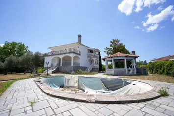 Cladirea: parter 111,41 mp cu intrare principala, living cu semineu, bucatarie si dining cu mare vitrina si acces la terasa parterului; etaj 99,89 mp cu trei dormitoare luminoase si baie mare. In parcela de 4.290 mp exista si o locuinta parter anterioara de 65 mp, un sopron de 12 mp, piscina 40 mp si foisor cu BBQ. Constructie din materiale de buna calitate; pardoseli din marmura si gresie; tamplarie exterioara din aluminiu cu geamuri duble si plase.