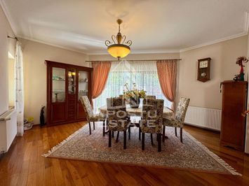 Mobilat: mobilat, Stare interior: finisat clasic, Bucatarie: deschisa separata, Mobilata, Echipata, Frigider, Aragaz, Hota, Masina de spalat vase, Usi interior: lemn masiv, Proprietarul plateste: telefon, Cablu tv, Curte: individuala, Gradina, Stadiu constructie: finalizat, Izolatie interioara: polistiren extrudat, Acoperis: tigla ceramica, Tip vila: individuala, Strazi limitrofe: asfaltate