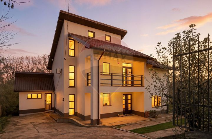 Aceasta proprietate cu 5 camere, cu o suprafata utila de 180mp, se bucura de un teren generos de 757 mp cu gradina amenajata si ingrijita cu pomi fructiferi, flori si gazon si reprezinta o oportunitate unica pentru tine si familia ta de a avea o casa frumoasa, spatioasa si cu potential, plasata intr-un cadru natural langa Padure intr-o zona exclusivista si foarte linistita, dar cu acces facil catre oras.