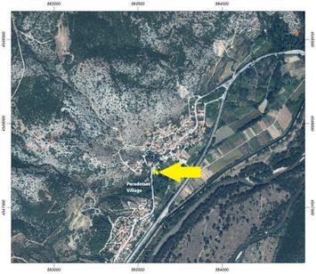 Proprietatea se află în centrul satului Paradeisos; satul este alimentat cu apă gratuită de la izvoare și dispune de mini-market, taverna și cafenea. Distanțe: 15 km de Chrysoupoli, 15 km de Xanthi, 30 km de mare (Keramoti), 25 km de aeroport şi 2 km de Egnatia Odos.