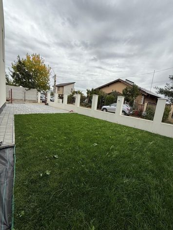 -Curte menajata cu gazon si pavata