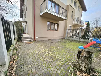Curte amenajata in fata + curte verde in spate