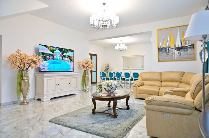 Proprietatea impresioneaza printr-o suprafata desfasurata ampla de 295 mp, la care se adauga 35 mp de terasa inchisa, amenajata ca spatiu de relaxare cu sauna si baie proprie - locul ideal pentru seri memorabile alaturi de prieteni. Suprafata totala ajunge astfel la 330 mp, oferind confort, functionalitate si multiple posibilitati de amenajare.