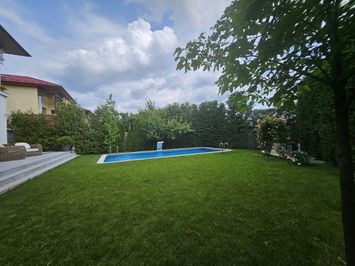 Gradina a fost amenajata in detaliu si beneficiaza de ingrijire periodica si intretinere. Piscina exterioara amenajata ce beneficiaza de sisteme de ultima generatie.