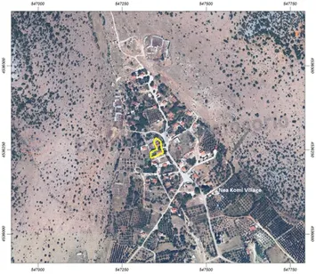 Proprietate în Nea Komi care include două case independente (80 mp și 110 mp) și o magazie de 70 mp, toate pe un teren de 1.063 mp; în anunț este menționată și o locuință parter de 190 mp.
