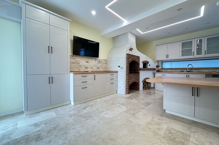Finisaje: parchet laminat, Gresie, Vopsea lavabila, Faianta, Geamuri termoizolante - aluminium; geamuri cu izolație fonică, Geamuri cu protecție uv, Geamuri tripan, Dotari: aer conditionat, Scara interioara, Sistem de alarma, Usa metalica, Senzor pentru incendii, Masina de spalat rufe, Iluminat exterior, Acces uscatorie, Rulouri electrice, Videointerfon, Televizor, Spatiu agrement, Wireless, Bideu; cabină de duș, Șemineu, Acoperiș, Telecomandă poartă acces auto