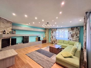 Finisaje: parchet laminat, Gresie, Vopsea lavabila, Faianta, Geamuri termoizolante - pvc, Calorifere fonta; geamuri tripan, Dotari: aer conditionat, Masina de spalat rufe, Iluminat exterior; cadă, Acoperiș