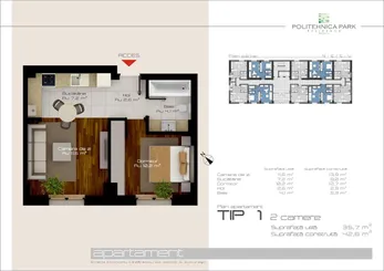 - apartamente cu 2 camere - suprafete de la 42.80 mp - pana la 75.80 mp