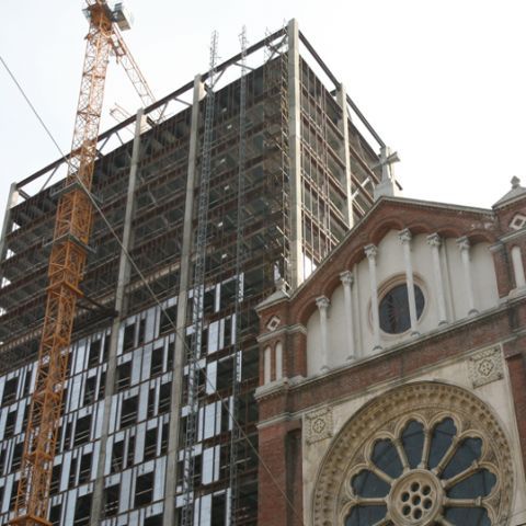 Proiectul clădirii de birouri a fost anunţat de mai bine de patru ani, dar pe fondul litigiilor dintre Arhiepiscopia Romano-Catolică, firma Millennium Building Development, beneficiarul proiectului, şi Primăria Sectorului 1, care a eliberat autorizaţiile de construire, lucrările au fost de mai multe ori suspendate, motiv pentru care imobilul a ajuns doar în acest an într-un stadiu avansat de finalizare.